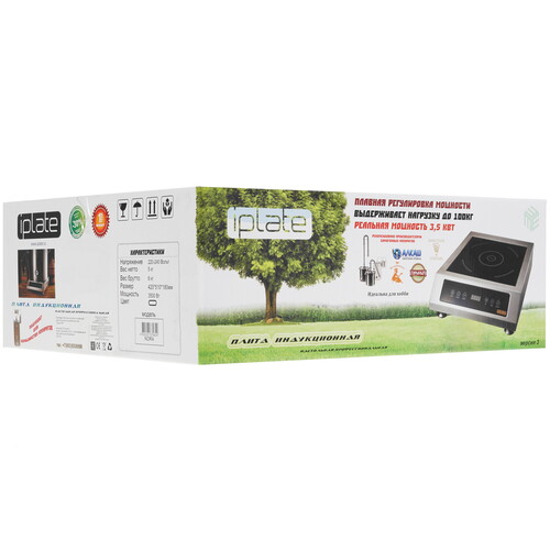 3.5 кВт, конфорок - 1 шт, переключатели - сенсор, покрытие - нержавеющая сталь, стеклокерамика, индукция