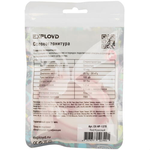 Проводная гарнитура Exployd EX-HP-1370 – стильная, легкая и удобная. Она полностью оформлена в красном цвете и предлагает востребованный функционал. Динамические излучатели диаметром 10 мм обеспечивают четкое и насыщенное звучание. Для ответа на звонки на небольшом пульте предусмотрен интегрированный микрофон. Многофункциональная кнопка помогает легко управлять воспроизведением музыки и вызовами. Exployd EX-HP-1370 оснащена мягкими силиконовыми вкладышами. Подключение с помощью аудиокабеля с разъемом 3.5 мм гарантирует широкую совместимость.