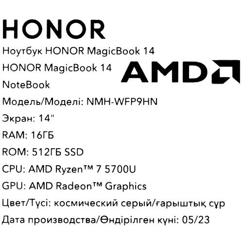 14" Ноутбук HONOR MagicBook 14 NMH-WFP9HN серый