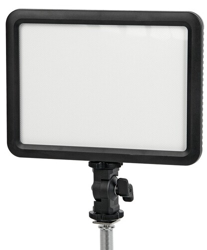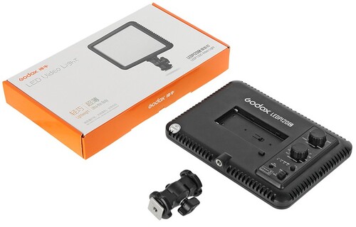 Светодиодный накамерный осветитель Godox LEDP120C предназначен для фото- и видеосъёмки, для макрофотографии, съемки товаров и т. д 116 ярких светодиода, длительная работа от аккумулятора позволят получить качественный результат как профессионалам, так и любителям. Особенность этого осветителя в его конструкции. Холодные и теплые светодиоды установлены по периметру. В отличие от наиболее распространенных LED панелей, где светодиоды располагаются линейно по всей площади, подобное техническое решение обеспечивает равномерную засветку излучающей поверхности и дает стабильно ровный световой поток. Кроме того, в отражении виден не набор светящихся точек, а ровный прямоугольник, что воспринимается более естественно. Корпус осветителя изготовлен из прочного пластика и представляет собой световую панель с одной стороны и элементами управления и разъёмами для питания с другой.