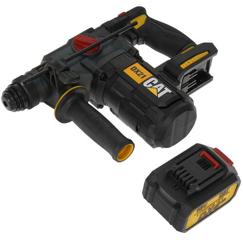 Устройство CAT DX21 с прорезиненным корпусом, второй ручкой для лучшего упора и антивибрационной системой не вызовет усталости рук даже при хвате в неудобном положении. Система дополнена реверсом и яркой подсветкой, ограничителем глубины сверления и защитой от случайного запуска. Инструмент поставляется в удобном для хранения кейсе с двумя сменными АКБ и ЗУ, дополнительной ручкой и ограничителем.