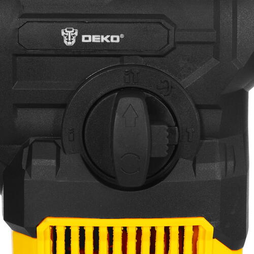 Перфоратор DEKO DKH2000 оснащен патроном SDS-Plus. Такой тип крепления оснащения сочетает в себе простоту использования и безупречную надежность. Высокая (2 кВт) мощность электромотора гарантирует перфоратору не только значительную производительность, но и существенный ресурс. Важная особенность комплектации инструмента – наличие кейса. Несмотря на существенную (5.57 кг) массу, перфоратор можно с легкостью носить с места на место.
