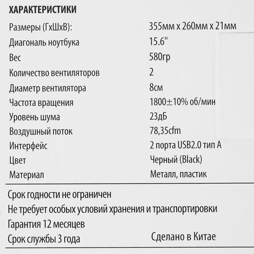 до 15.6", вентиляторы - 2 шт, 23 дБ, USB хаб - 1, пластик