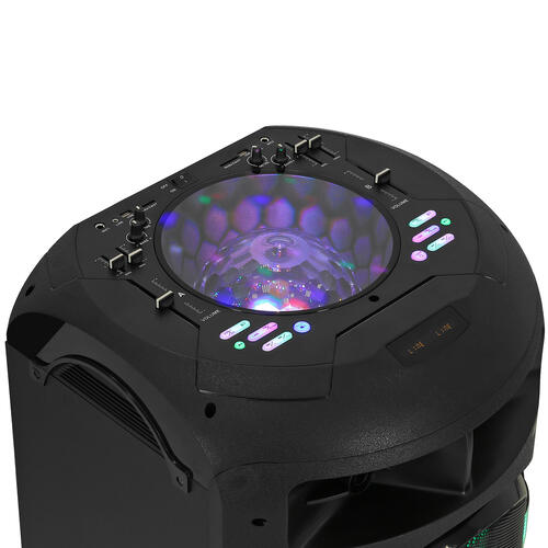 Портативная аудиосистема Aceline V880 с выходной мощностью 300 Вт независимо от уровня громкости выдает реалистичный звук с насыщенными низкими частотами. Акустическая конструкция представлена 2 динамиками и сабвуфером. Корпус из пластика и МДФ устраняет искажения звука. На верхней панели расположены кнопки и дисплей для простой настройки параметров.