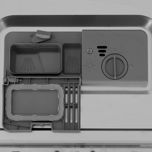 Посудомоечная машина DEXP DWMF2B-W обладает одноименной опцией, которая нейтрализует накопившиеся внутри загрязнения. Встроенное освещение облегчает загрузку устройства. Индикаторы уведомляют об остатке средств в соответствующих резервуарах. Характерный звуковой сигнал сообщает, что ассистентка завершила выполнение непосредственных обязанностей. Автоматическое открытие дверцы по окончании цикла способствует быстрому удалению избыточной влаги.