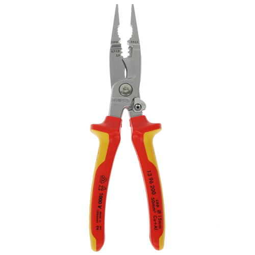 Клещи электромонтажные Knipex KN-1396200 – инструмент для комфортного и безопасного проведения электромонтажных работ, оборудованный разжимающей пружиной и электроизолированными двухкомпонентными рукоятками. Гладкие профилированные поверхности обеспечивают бережный и в то же время надежный захват. Клещи подходят для работ с проводами, обладающими сечением в пределах 0.75-2.5 мм². Клещи электромонтажные Knipex KN-1396200 изготовлены из инструментальной стали, которая характеризуется устойчивостью к неблагоприятным воздействиям и долгим сроком службы.