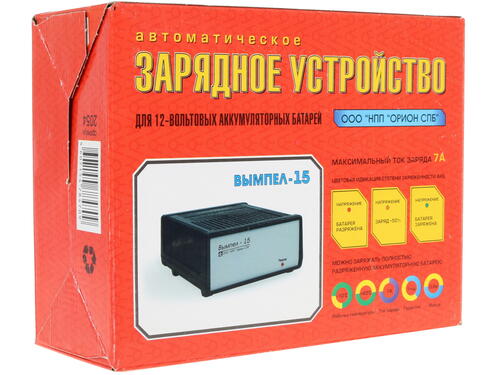 Зарядное устройство Вымпел-15 – устройство, при помощи которого вы легко сможете зарядить аккумуляторную батарею легкового или грузового авто, мотоцикла или лодки. Модель поддерживает работу с аккумуляторами любой емкости, что делает устройство универсальным. Максимальный ток заряда составляет 7 А, а напряжение устройства – 12 В. В качестве индикаторов состояния зарядки выступают светодиоды.