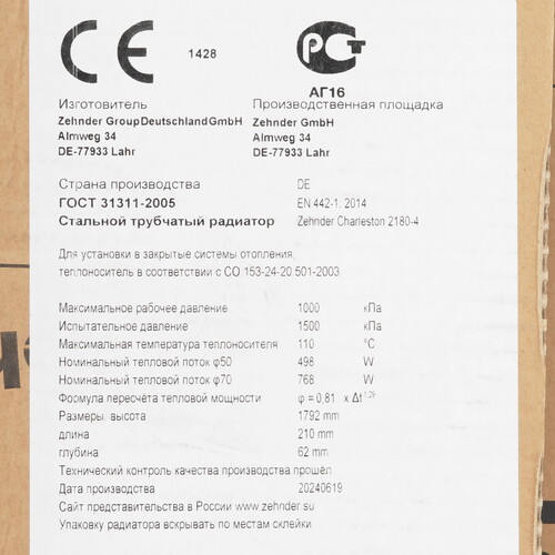 1734 мм, теплоотдача 767 Вт, габариты 184х1792х62 мм, рабочее давление 10 Бар, вес 10.12 кг