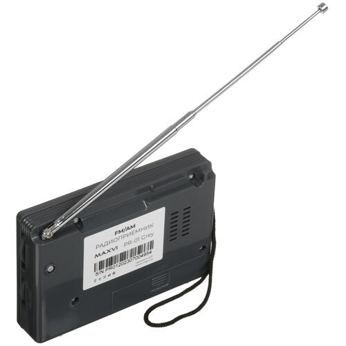Радиоприемник Maxvi PR-01 оборудован телескопической антенной для приема сигнала. Автономная работа модели обеспечивается с помощью 2 батареек типа АА, а также путем подключения кабеля к сети.