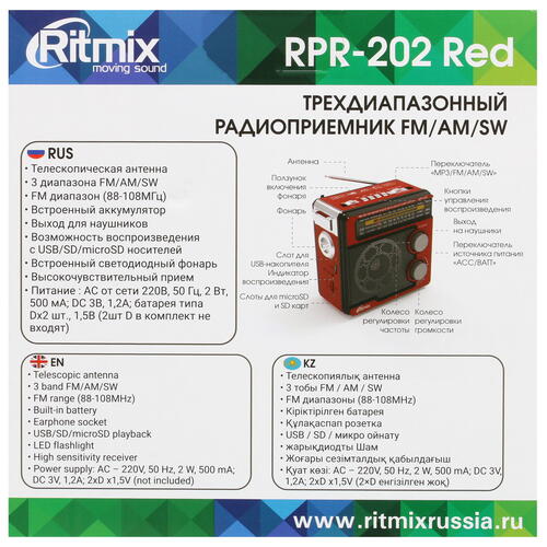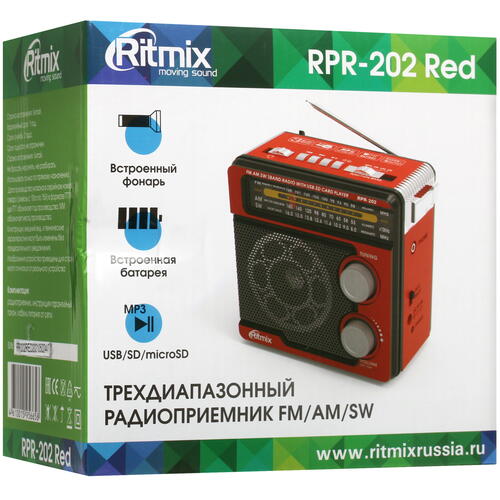 Радиоприемник Ritmix RPR-202 представляет собой решение в стильном классическом дизайне, которое станет отличным дополнением вашего дома. Данная модель может работать не только в режиме FM, но также поддерживает широкий диапазон частот AM и SW. Благодаря этому вы сможете в полной мере насладиться широким выбором новостных, музыкальных и других станций вещания. Кроме того, радиоприемник поддерживает воспроизведение аудио в формате MP3 с карт памяти SD и microSD или внешних носителей, подключаемых при помощи разъема USB-A. Управление воспроизведением может осуществляться при помощи механических кнопок и аналогового дисплея.