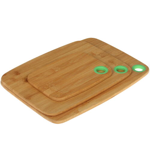 Комплект разделочных досок Aceline HNG-SET состоит из 3 досок прямоугольной формы, изготовленных из прочного бамбука. При толщине 0.9 см эти доски отличаются размерами 20х14.5 см, 30х23 см, 35х25.5 см и подходят для разделывания, нарезки и измельчения разнообразных продуктов на домашней кухне. Каждая доска получает проделанное в углу отверстие, чтобы ее можно было хранить в подвешенном виде. Общий вес трех досок в наборе составляет всего 1.2 кг.