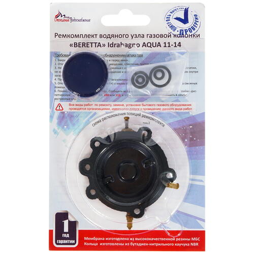 Ремкомплект газовой колонки ООО «ВДГО» 01020220 поможет отремонтировать водонагреватель Beretta Idrabagno AQUA 11. Все комплектующие идеально подходят для замены износившихся оригинальных запчастей. Проводить ремонт должен специалист в соответствии с пометками и инструкцией из паспорта.