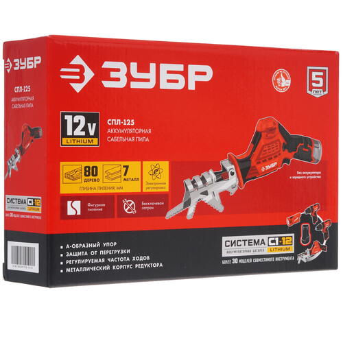Сабельная пила Зубр СПЛ-125 С1-12 12V , Без ЗУ, Без АКБ