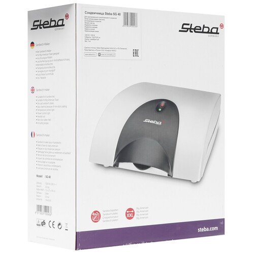 Сэндвичница Steba SG 40 – стильный и компактный прибор с металлическим серебристым корпусом, дополненным термостойкими пластиковыми элементами черного цвета. Устройство действует с мощностью 1200 Вт, гарантирующей быстрый нагрев до нужной температуры. Система поставляется с одной рабочей панелью для приготовления сэндвичей.