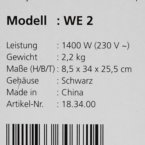 Прибор Steba WE 2 дополнен терморегулятором и удобными теплоизолированными ручками, а также защитой от перегрева. Степень готовности проверяется визуально. Вафельницу можно хранить вертикально, что позволит сэкономить место в кухонном шкафу. Прибор весит 2.2 кг и обладает размерами 34x8.5x23.5 см.