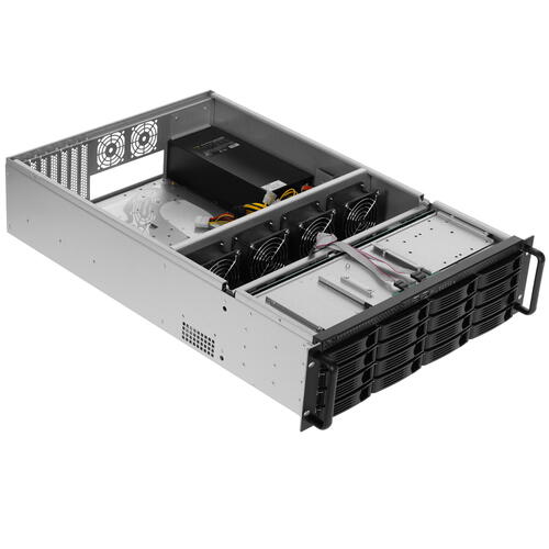 Корпус для серверной сборки ExeGate Pro 3U660-HS16 допускает установку графического процессора длиной не более 330 мм. В изделии предусмотрен один отсек стандарта FlexBay (5.25") и 16 отсеков для монтажа жестких дисков форм-фактора 3.5 дюйма. Для отвода тепла, выделяемого компонентами сборки, корпус получает оконные вентиляторы размером 60 мм (2 шт.) и 80 мм (4 шт.).
