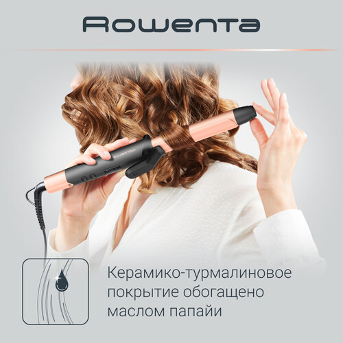 Щипцы для завивки волос ROWENTA CF2810F0 диаметром 25 мм поддерживают 9 температурных режимов в диапазоне от 130 до 210 °C. Для доступа к функционалу достаточно воспользоваться электронной панелью управления. Керамико-турмалиновое покрытие отличает быстрое распределение тепла и высокая износоустойчивость.