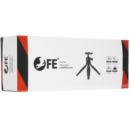 Черный штатив Falcon Eyes LifePOD mini из алюминия и ударопрочного полимера выдерживает нагрузку до 3 кг. Настольный 1-секционный трипод с пластиковыми ножками устойчиво стоит на любой поверхности, хорошо стабилизирует камеру. Вы можете настраивать рабочую высоту штатива в пределах 10-15 см.