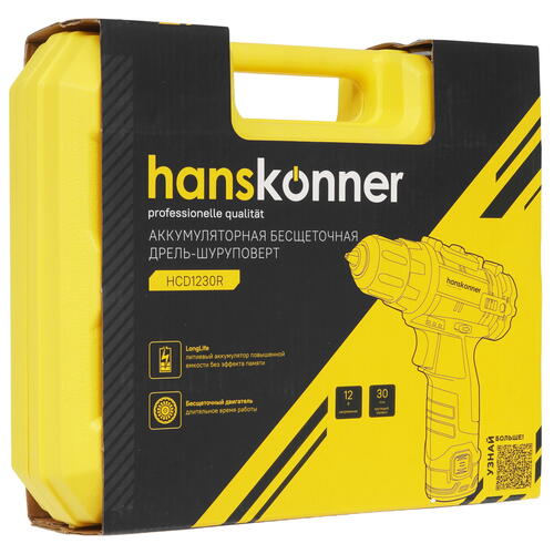 Аккумуляторный шуруповерт Hanskonner HCD1230R с бесщеточным двигателем один из самых мощных и компактных в своем классе.
