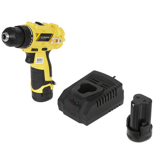 Шуруповерт Hanskonner HCD1230R поставляется с двумя сменными аккумуляторами в пластиковом кейсе.