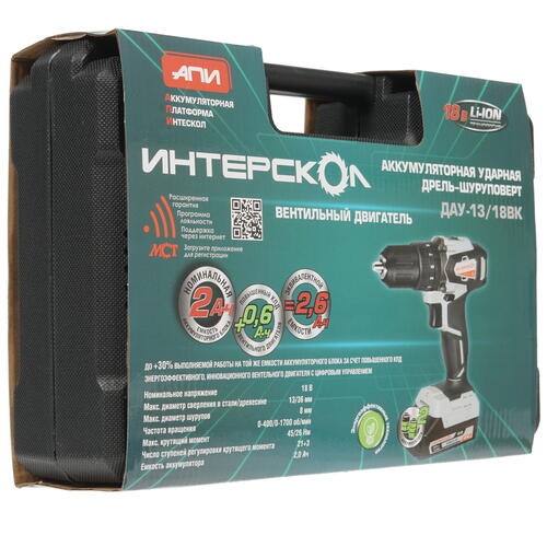 Дрель-шуруповерт Интерскол ДАУ-13/18ВК АПИ 18V