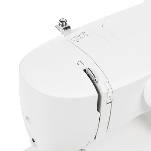 Швейная машина Singer M 1605 – легкая и компактная модель, выполняющая всего 6 операций, среди которых есть полуавтоматическая петля. Она подойдет тем, кто планирует использовать ее нечасто или уверен в том, что ему никогда не понадобятся декоративные строчки. Все базовые функции у этой машины есть, длина и ширина стежка такие же, как у полноразмерных моделей, для удобства предусмотрена рукавная платформа и даже отсек для хранения аксессуаров.