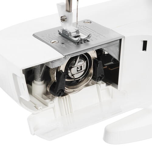 Singer M 1605 оборудована встроенным электрическим двигателем, скорость работы регулируется усилием нажатия на педаль. Для закрепления нити предусмотрен реверс. Освоить работу с такой машинкой не составит труда ни для кого, а все самое необходимое для начала ее использования входит в комплект.