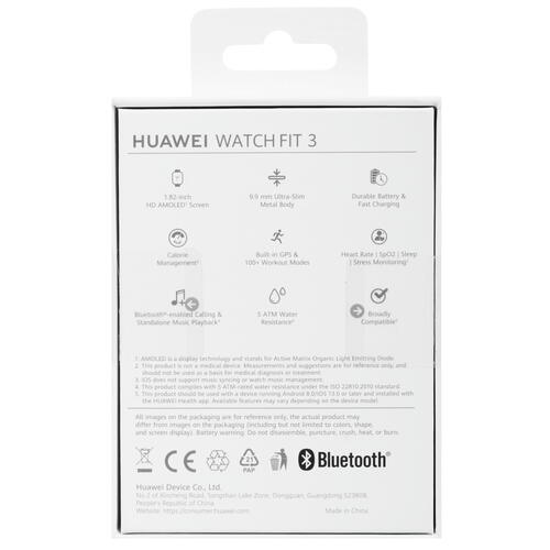 На квадратном дисплее AMOLED диагональю 1.82 дюйма с яркостью 1500 нит отображается четкая и красочная картинка. С помощью поворотной кнопки на боковой части корпуса можно масштабировать экран, перемещаться вверх и вниз, настраивать громкость. Встроенные датчики отслеживают пульс и уровень кислорода в крови, обнаруживают мерцательную аритмию и экстрасистолию, контролируют фазы сна. Смарт-часы HUAWEI WATCH FIT 3 оснащены системой навигации GPS и беспроводной технологией Bluetooth. В режиме ожидания на одном заряде они способны работать автономно до 10 дней.