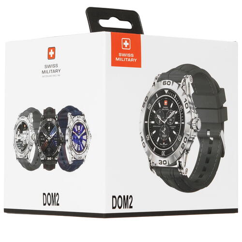 Смарт-часы Swiss Military Dom 2 уведомляют об артериальном давлении, пульсе, содержании кислорода в крови. После синхронизации со смартфоном доступен прием вызовов и чтение уведомлений от приложений. От одного заряда модель работает на протяжении 168 ч.
