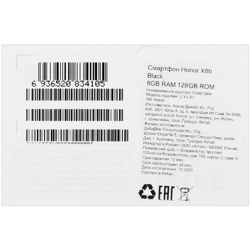 6.7" Смартфон HONOR X8b 128 ГБ черный