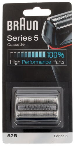 Сетка и режущий блок (в сборе) Braun 52B используются совместно с электрическими бритвами Braun 5-й серии. Список совместимых с этим аксессуаром моделей широк: в него, в частности, входят бритвы Braun 5020s, Braun 5030s, Braun 5040s, Braun 5050cc, Braun 5070cc, Braun 5080cc, Braun 5090cc, Braun 5190cc. Своевременная замена режущего блока необходима для обеспечения нужного уровня эффективности ухода за лицом. Заточка режущего блока – 30°. Замена режущего блока и сетки являются очень простыми операциями, и могут производиться любым пользователем электрической бритвы. Аксессуар упакован в компактный блистер, дизайн которого выполнен в стилистике, характерной для техники и аксессуаров Braun.