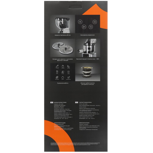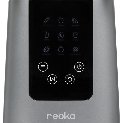 Reoka RKJ-S200 поддерживает 8 скоростей, доступ к которым открывается через сенсорную панель управления. Автоматический выброс мягкости избавляет напиток от посторонних примесей. Система «Капля-стоп» не допускает проливания сока на кухонные поверхности. Комплект насадок позволяет нарезать и нашинковать овощи. Режим реверса способствует устранению застрявших кусков продуктов.