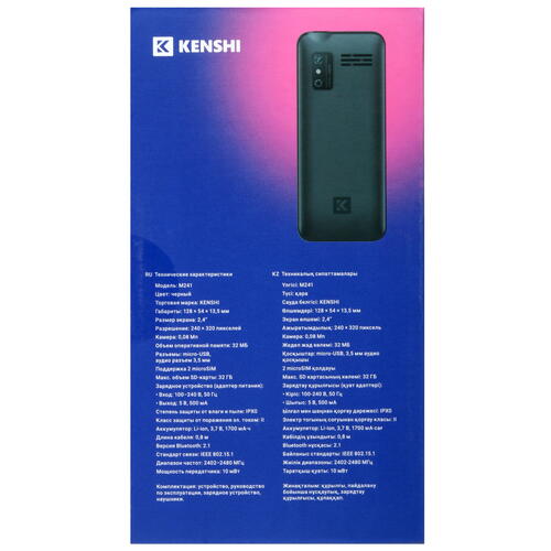 Сотовый телефон KENSHI M241 оборудован 2.4-дюймовым цветным дисплеем, транслирующим необходимую пользователю информацию. Конфигурацией пластикового корпуса предусмотрен разъем для подключения гарнитуры. Энергия аккумулятора емкостью 1700 мАч рассчитана на 340 ч работы в режиме ожидания.