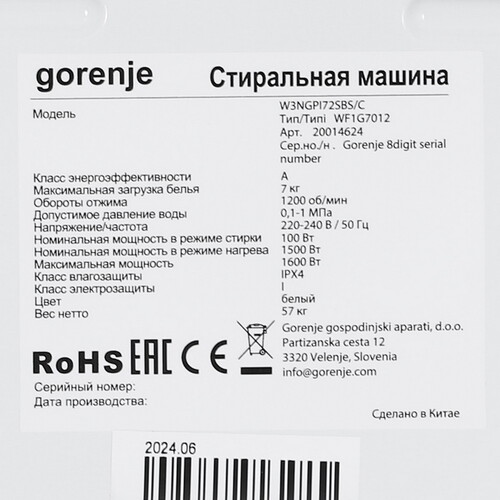 Стиральная машина Gorenje W3NGPI72SBS/C белый