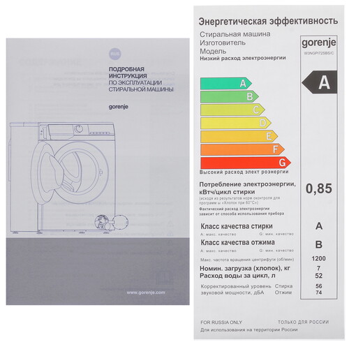 Стиральная машина Gorenje W3NGPI72SBS/C белого цвета имеет фронтальную загрузку и объем барабана 43 литра, что позволяет стирать до 7 килограммов белья за одну загрузку. Скорость вращения барабана при отжиме достигает 1200 оборотов в минуту, которых хватает для полного удаление воды из ткани после стирки. Инверторный двигатель плавно регулирует работу модели. Машина оснащена 15 программами стирки и предоставляет выбор режимов для разных типов тканей и уровней загрязнения. Энергоэффективность стиральной машины соответствует классу B, что свидетельствует о ее экономичном использовании электроэнергии. Дисплей на панели управления показывает текущие настройки стиральной машины Gorenje W3NGPI72SBS/C.