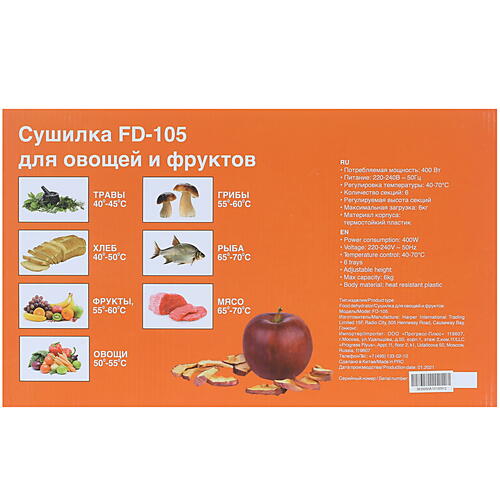 Благодаря прозрачным стенкам устройства OLTO FD-105 каждый этап сушки легко контролируется. Секции глубиной по 32.5 см легко настраиваются по высоте, но общая загрузка камеры не должна превышать 6 кг. Сушилка займет места не больше, чем микроволновка, но позволит приготовить лакомства на всю зиму.