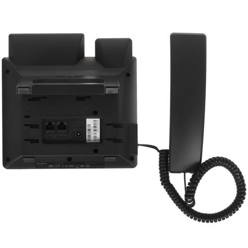 Для подключения внешнего оборудования на корпусе телефона предусмотрено несколько выходов типа RJ-9 и RJ-45. В качестве источника питания модель может использовать технологию PoE или сеть 220 В. Поставка устройства осуществляется с набором кабелей и подставкой.
