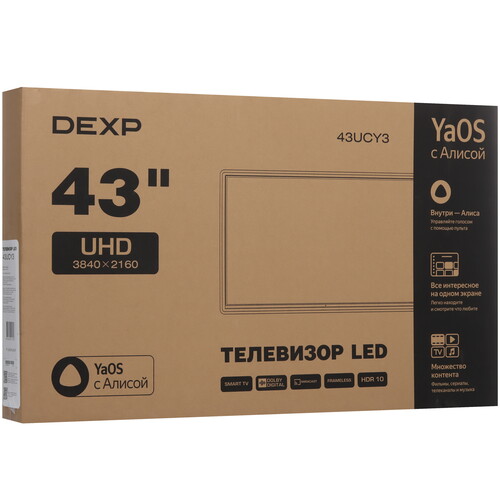 Direct LED, 4K UltraHD, Wi-Fi, 60 Гц, YaOS, HDMI х 3, USB х 2 шт