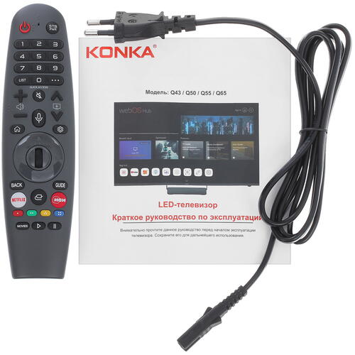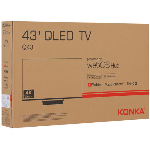 Телевизор LED Konka Q43 оснащен 43-дюймовым экраном с разрешением 4K UltraHD (3840x2160 пикселей) для отображения различного контента с детализированной и красочной картинкой. В устройстве используется технология Direct LED, которая обеспечивает равномерную и яркую подсветку дисплея. Модель поддерживает технологии Active HDR, HDR10 и HLG, благодаря которым улучшается цветопередача, контрастность и глубина черного цвета. Устройство предусматривает Smart TV и встроенный Wi-Fi для просмотра IP-телевидения, видео из интернета и др.