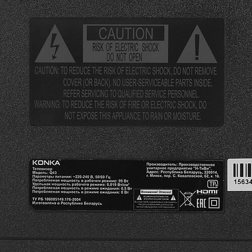 Просмотр контента на экране телевизора Konka Q43 будет сопровождаться громким и насыщенным звучанием из встроенной акустической системы с мощностью звука 20 Вт и поддержкой технологии Dolby Digital. Для подключения к устройству ТВ-тюнеров, игровых приставок и другого оборудования предусмотрены три HDMI-порта. Внешние накопители данных можно подключить при помощи двух разъемов USB. Для проводных наушников имеется аудиоразъем.