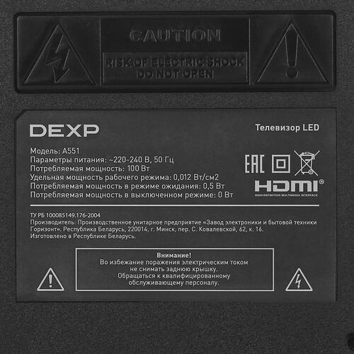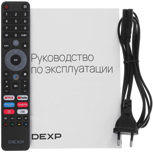 DEXP A551 обладает поддержкой Smart TV на базе Android TV. Голосовые команды и ассистент Google упрощают управление функциями и поиск нужного контента. Вы можете смотреть эфирные передачи, фильмы и сериалы через приложения, семейные фото и видео с USB-накопителя. ТВ позволяет подключать 3 приставки по HDMI и управлять ими с 1 пульта.