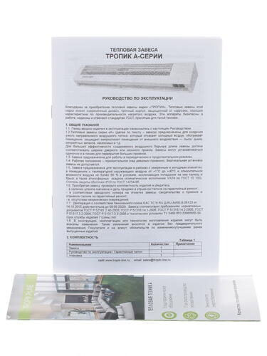 Корпус завесы имеет традиционный белый цвет. Габаритные размеры устройства составляют 910x170x114 мм. Масса завесы невысока: она равна 5.9 кг. В комплектацию модели входит руководство по эксплуатации.