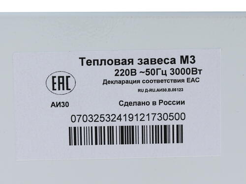 Тепловая завеса Tropik Line М3 оснащена самым передовым нагревательным элементом – СТИЧ, который обеспечивает мгновенный нагрев воздуха и его быструю подачу. Управляется тепловая завеса с отдельного блока управления, который поможет вам установить наиболее комфортную температуру нагрева и выбрать один из двух режимов мощности (1500 Вт или 3000 Вт). При работе прибора на высокой мощности его производительность составит 450 м3/час. Данные технические характеристики тепловой завесы, а также ее габариты (620x130x162 мм) предполагают ее установку в небольших помещениях.