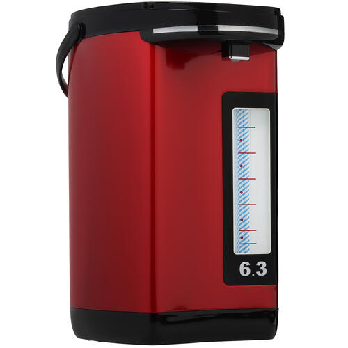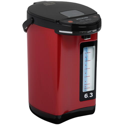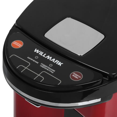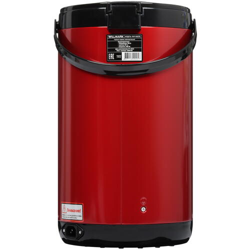 Красный термопот WILLMARK WAP-602CKL в красном корпусе с ручкой для переноски оснащен металлической колбой на 6.3 л с закрытым ТЭНом. Есть встроенный фильтр для очистки воды. Для подачи кипятка вы можете использовать электронасос или ручную помпу.