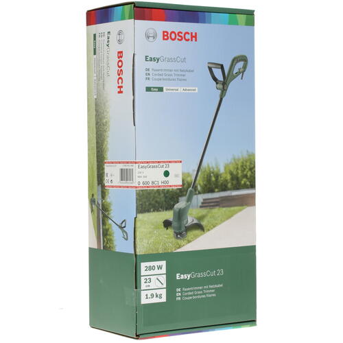 Триммер электрический Bosch EasyGrassCut 23 мощностью 250 Вт «превратит» неопрятную траву возле дома в ухоженную лужайку. Леска диаметром 1.6 мм легко справляется с тонкой молодой растительностью. Ширина одного «прохода» триммером составляет 23 см. Электрический двигатель модели расположен в нижней части прибора и совершает до 12500 об/мин на холостом ходу.