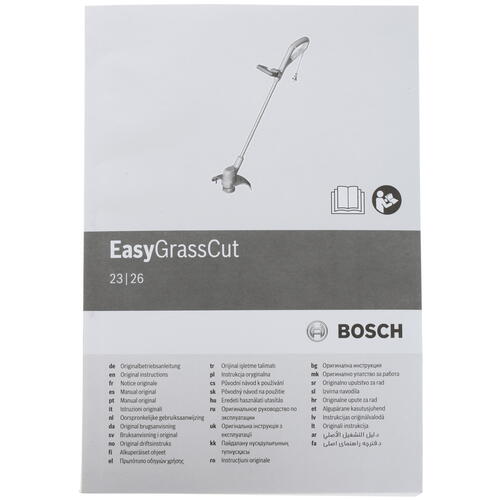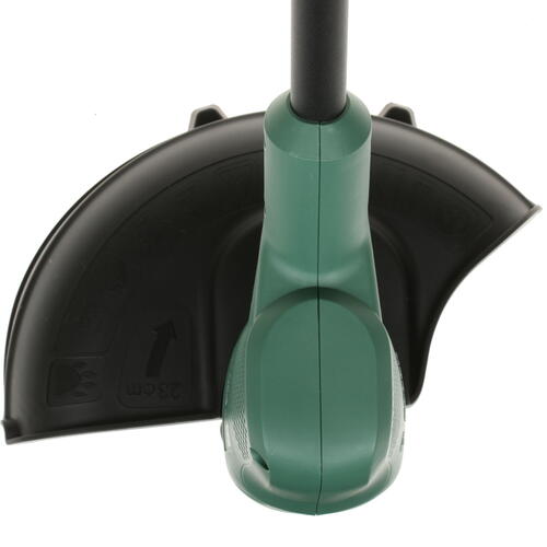 Складная ручка триммера электрического Bosch EasyGrassCut 23 имеет D-образную форму. За счет защитной скобы трава не разбрасывается в разные стороны. Работает триммер от стандартной электросети. Весит он всего 1.9 кг, поэтому «прогуливаться» с ним по участку будет необременительно для владельца.