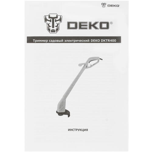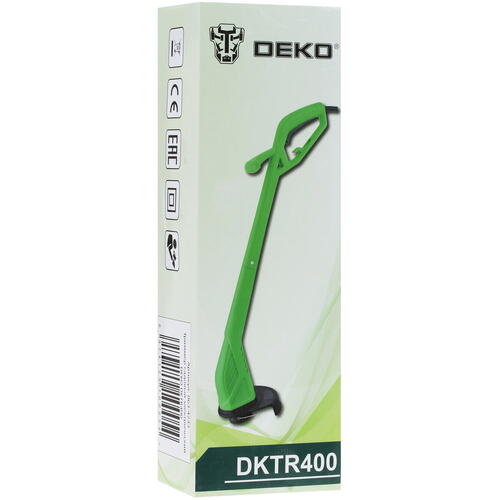 Прибор DEKO DKTR400 скашивает траву с помощью лески, обрабатывая участки шириной 22.8 см. Защитный щиток не позволит случайно задетым камням и щепкам отлетать в вашу сторону. Триммер быстро развивает скорость до 11500 об/мин, срезая молодые побеги и окрепшие сорняки.