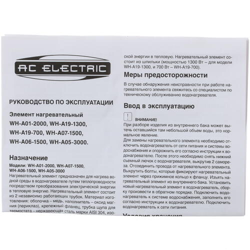Элемент нагревательный AC Electric WH-A1-2000 способен обеспечить эффективный нагрев воды и предназначен для совместной эксплуатации с водонагревателями. Благодаря мощности 2000 Вт он является производительным решением нагрева воды и помогает восстановить работоспособность нагревательного бака в случае износа данного компонента. Элемент AC Electric WH-A1-2000 совместим с водонагревателями различных производителей, что подчеркивает широкую совместимость. Изготовленный из надежных материалов, он отличается устойчивостью к появлению коррозии и длительным сроком службы.