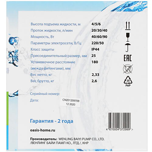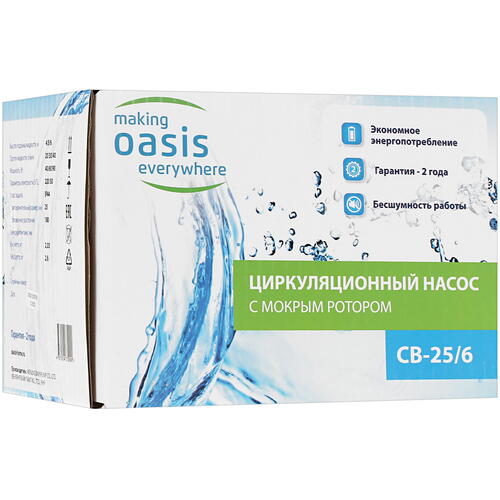 Oasis CB-25/6 может использоваться для отопительных систем коттеджей и частных домов. Благодаря тому, что перекачиваемая жидкость омывает движущиеся детали насоса, охлаждая подшипники и ротор, он будет служить долгое время. Оборудование обеспечивает легкий монтаж, отсутствие сервисного обслуживания, комфортную эксплуатацию. Мокрый ротор гарантирует сниженный уровень шума. Корпус насоса защищен в соответствии со стандартом IP44 от влаги и пыли, что позволяет использовать устройство в условиях слегка повышенной запыленности и влажности.