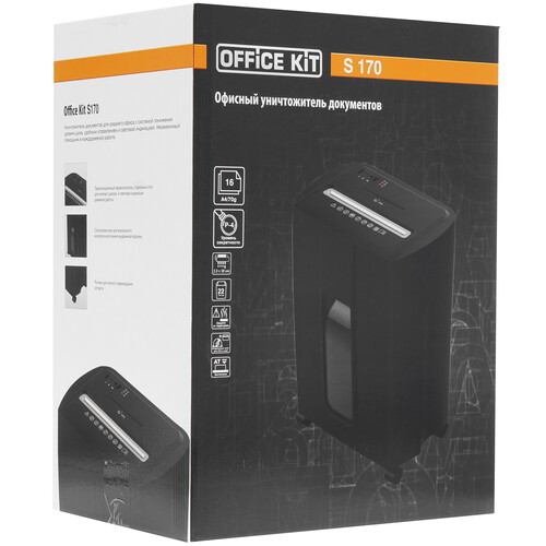 Уничтожитель бумаг Office Kit S170 оптимизирован для офисного использования. Обладающий уровнем секретности P-4 на основе перекрестной резки, он обеспечивает измельчение различных документов с повышенными требованиями к конфиденциальности. Также с помощью Office Kit S170 можно измельчать диски, пластиковые карты, скрепки и скобы. Данная модель характеризуется способностью уничтожения до 16 листов бумаги одновременно и вместительной корзиной на 22 л, которая легко очищается от отходов. Расположенные на основании корпуса маневренные колеса гарантируют удобство перемещения прибора.